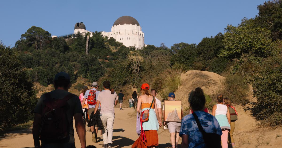 Why this group of hikers hauls heavy, framed paintings 2½ miles up Griffith Park