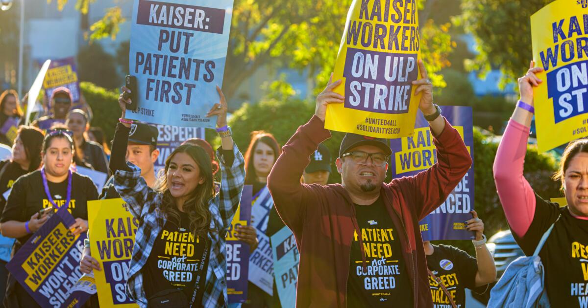 The Kaiser workers argue that the low pay and benefits, lack of adequate training and poor working conditions that led them to strike are also putting patients at risk. Health workers’ unions have said that strikes like this week’s can help improve patient care by addressing persistent staffing shortages. They say the better benefits and pay they are arguing for will encourage other workers to fill open positions and stay in their jobs longer. As of April, according to data obtained by the unions, 11% of union positions at Kaiser remained unfilled.