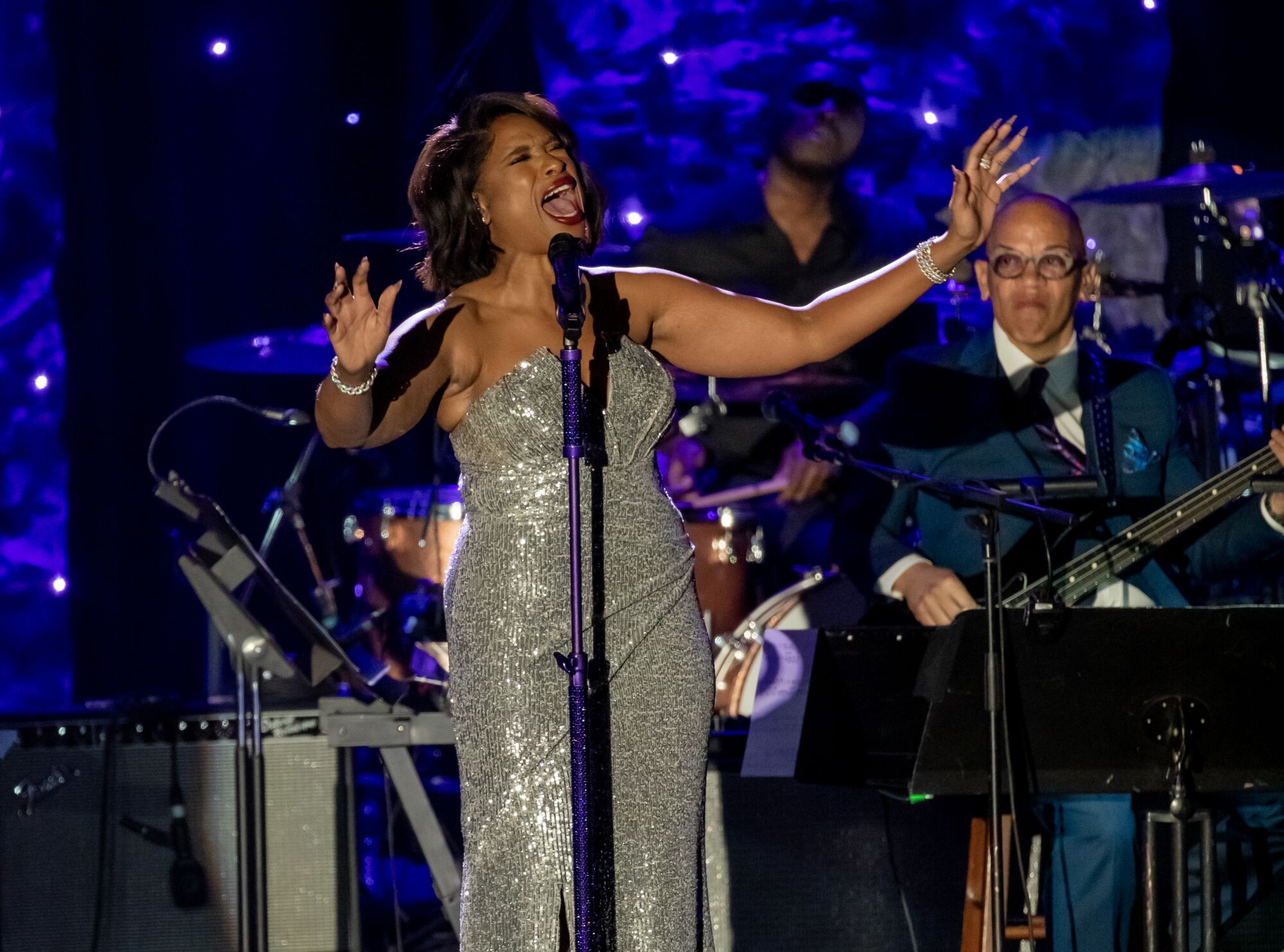Jennifer Hudson performs at the 2023 pre-Grammy gala at the Beverly Hilton.