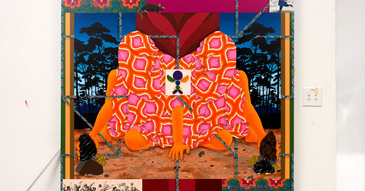 “A lot of my work deals with taking disparate symbols from various cultures and putting them together to tell a parable, a lesson, to describe a moment or talk about an anxiety or fear that I have,” says Amir H. Fallah.